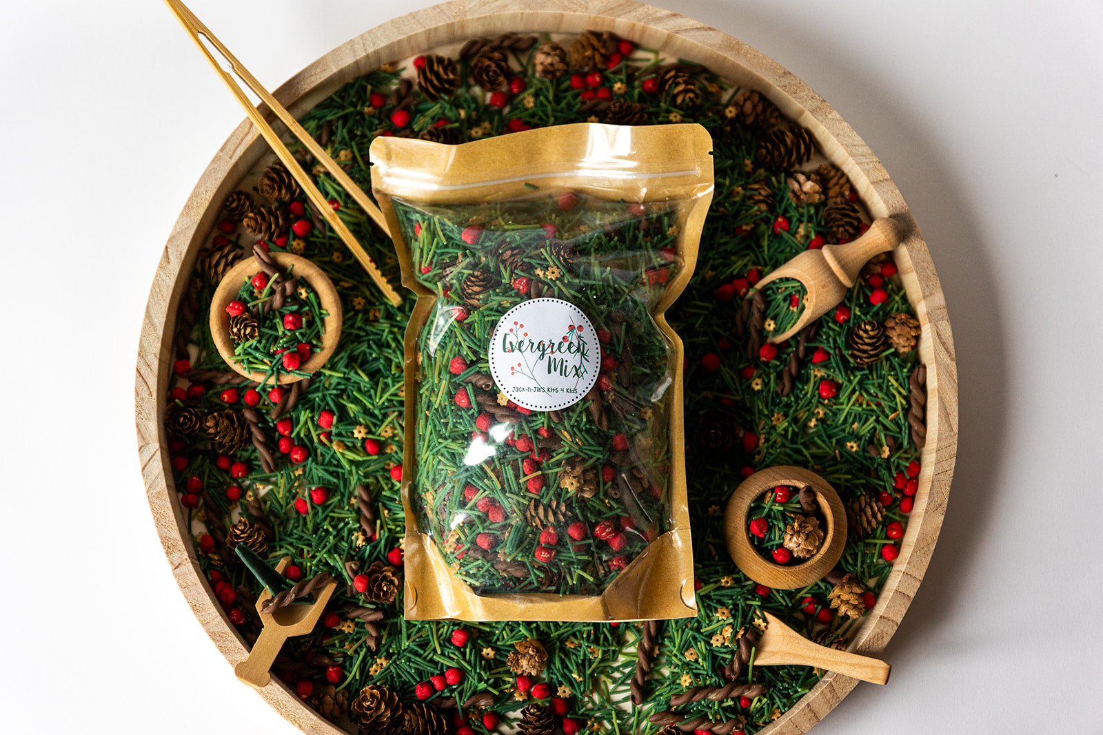 Deck the halls with this sweet and simple Evergreen Sensory Bin Filler. Chose from 2 options: